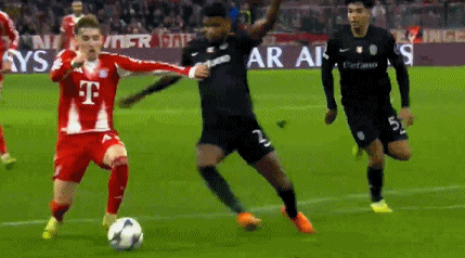上半场拜仁攻势如潮但颗粒无收,双方半场踢成0-0。